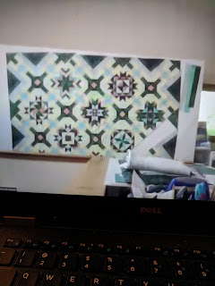Candy: Started a new dazzling Blooming Nine Patch quilt. She really likes the Robert Kaufman pattern for Blooming Nine Patch.