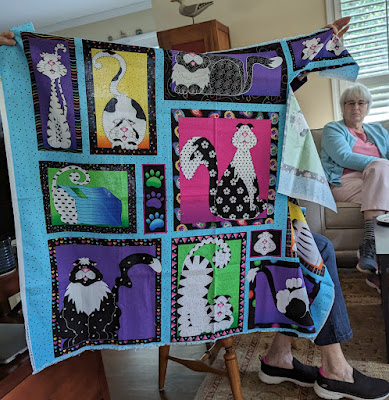 Ruth B. came across a panel in her stash that at one point she had a plan and started to cut around each kitty. Stay tuned to see how they go back together.