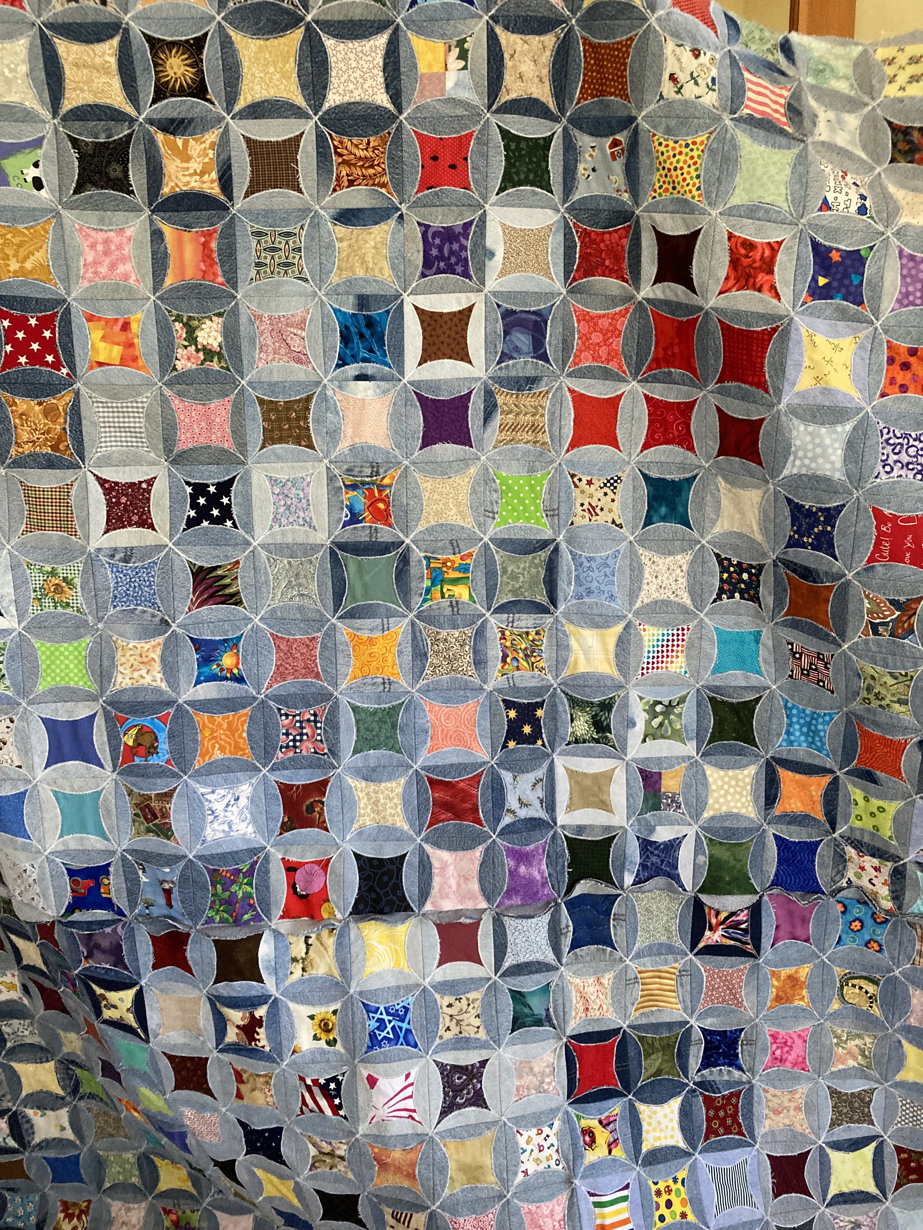 Joy really wowed the group with amazing Cathedral Window quilt made using denim! |